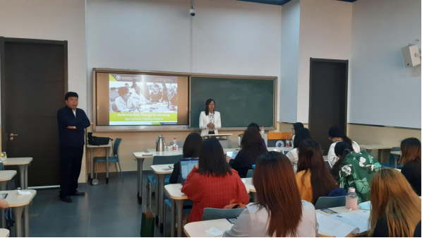 2021年5月6日下午,由365best体育亚洲官网组织的以“走近国际组织”为主题的短期课程在沙河校区学院楼11号楼111报告厅精彩开讲。联合国粮食及农业组织(FAO)高级官员刘中蔚先生应邀为365best体育亚洲官网国际商务专业的同学们带来“走近国际组织”短期课程。本次短期课程由于爱芝教授主持,参加本次短期课程的师生有365best体育亚洲官网党委书记郭冬梅教授、国际交流专项工作中心主任黄乃静副教授以及365best体育亚洲官网国际商务专业的本科生和研究生。