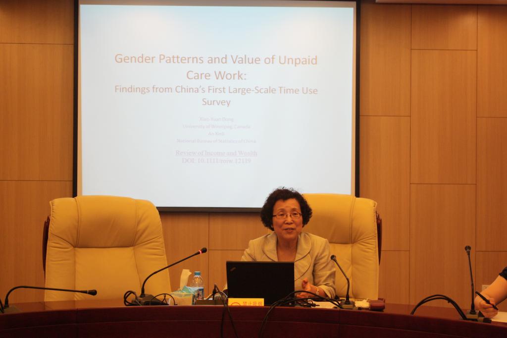 董晓媛教授首先从“无酬照料”这一概念入手,先后引出了女性不平等、留守儿童等问题,并提出“无酬劳动”研究对劳动再生产问题意义重大。她利用2008年中国第一次大规模时间利用调查数据,采用基于投入法的五种方法对无酬劳动进行了度量,发现被忽视的无酬劳动价值约占GDP的25%-32%。回归分析结果显示,男性和女性时间分配决定具有一定差别,女性缺乏替代的灵活性,可支配时间少,容易陷入时间贫困。她重点强调了“社会观念”在这一现象形成过程中所起的作用,认为社会应意识到无酬照料的价值所在,应当给与女性更多的尊重和关怀,并期待中国针对女性权利及不平等问题做更多政策上的努力,提升国际软实力。