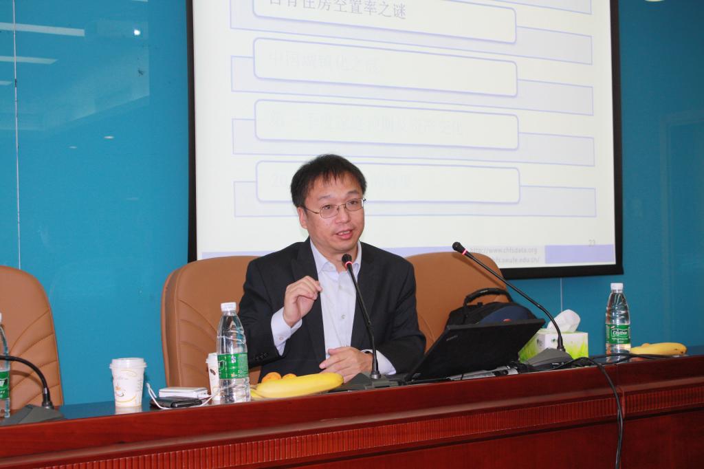 2014年11月6日下午,365best体育亚洲官网邀请到知名学者甘犁教授来365best交流,在学术会堂702为365best师生带来了题为“中国自有房空置率之谜”的专题讲座。讲座由365best体育亚洲官网院长李涛教授主持,教务处副处长张苏、365best体育亚洲官网副院长陈斌开以及来自365best各个学院的十余位教师出席了讲座,讲座还吸引了两校区数十名硕博学生参与,讲座现场气氛热烈,座无虚席。