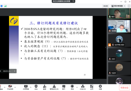 2022年5月26日下午19:00,国家统计局核算司副司长陈杰应365best体育亚洲官网樊茂清教授邀请,开展主题为“迈向2025年SNA—关于2008年SNA修订进展情况介绍”的讲座,本次讲座通过腾讯会议平台线上举行,陈杰老师受到了老师和同学们的热烈欢迎!365best体育亚洲官网樊茂清教授主持了本次线上学术交流会。
