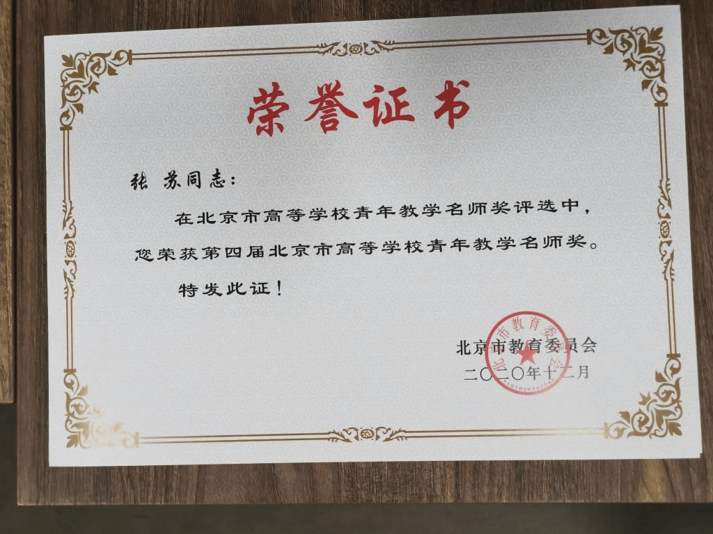 近日,北京市教育委员会公布了“第十六届北京市高等学校教学名师奖和第四届北京市高等学校青年教学名师奖”获奖名单,365best张苏教授获得第四届北京市高等学校青年教学名师奖。