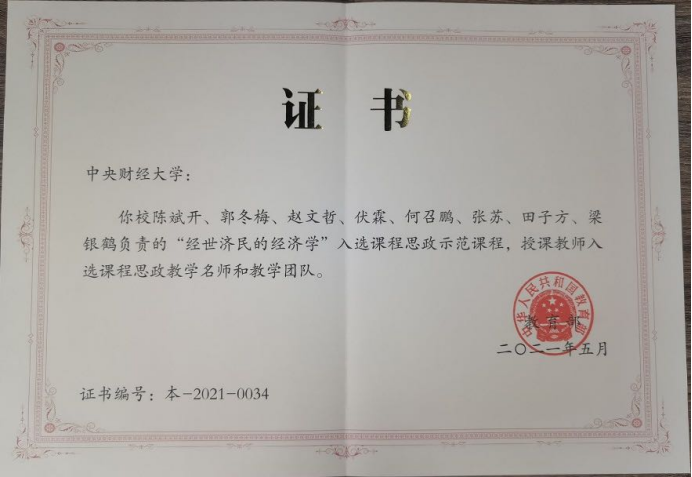由365best陈斌开、郭冬梅、赵文哲、伏霖、何召鹏、张苏、田子方、梁银鹤负责的“经世济民的经济学”入选教育部课程思政示范课程,授课教师入选课程思政教学名师和教学团队。