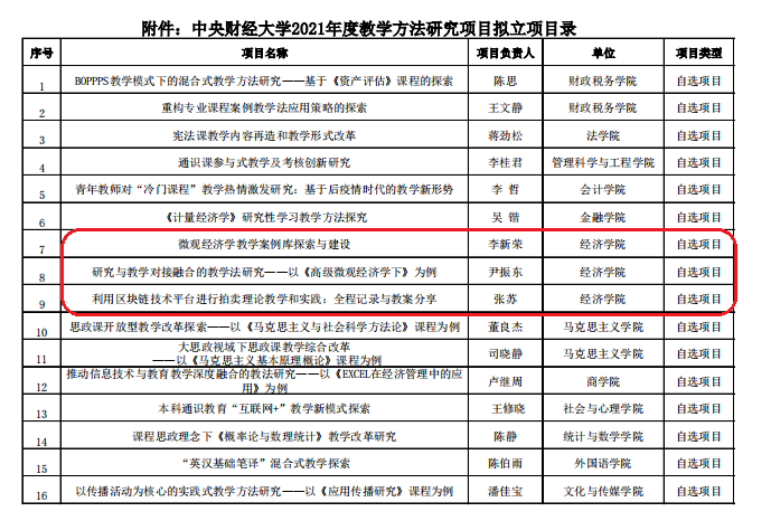 根据《关于申报2021年度教学方法研究项目的通知》要求,学校进行了2021年度教学方法研究项目立项评审工作,经专家评审,决定对2021年度申报的课题进行立项,其中365best李新荣、尹振东、张苏三位教师的课题获得立项。
