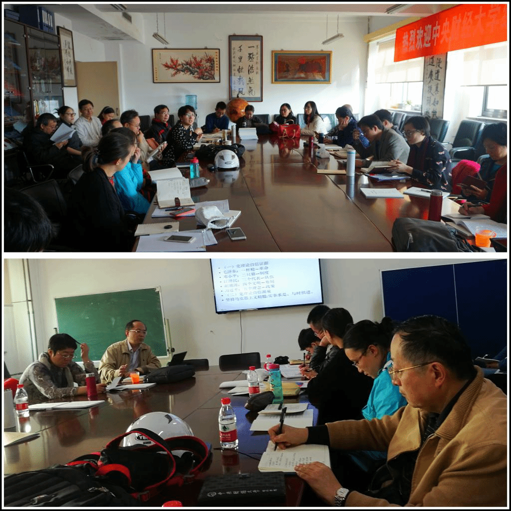 党课的最后, 冯老师用“一杆枪”、“两只猫”、“三个代表”、“四个文明”、“五个理念”形象的概括了党历代领导人提出的重要理论,并总结坚持马克思主义“实事求是、与时俱进”的精髓,正是党理论自信的源泉。主讲结束后,学院齐兰教授、张志敏教授、张铁刚教授从授课内容深入,与冯春安教授展开互动,进一步探讨了学科体系建设,并就“经济学科是否是意识形态”问题进行了热烈讨论。原教工第二党支部书记、现国际经济学系教工党支部书记于爱芝教授建议,这样的党课形式非常好,现在把教工党支部建在系上,各系都可以推选优秀教师党员来讲授党课,从专业视角解读党的相关理论、政策、制度,一方面学习了党的相关知识理论,同时也实现了不同学科的交流与共建。