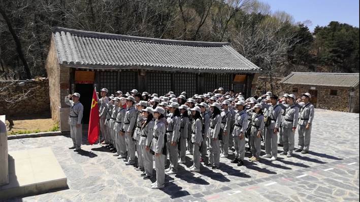 抵达目的后,在引导员的带领下大家换好八路军军装、军挎和步枪,整队前行——烈日中步行1.5公里,亲身体验了革命先烈曾经走过的长征路,最后到达英雄广场。在解说员的讲解下,大家对革命烈士的光辉事迹有了更深的了解,并怀着崇高的敬意和感激,向诸位烈士脱帽致敬。随后,我们一行人坐车前往霹破石村,参观昌延联合县政府遗址,重温入党誓词,这让大家更加牢记作为一名党员必须坚守的使命。