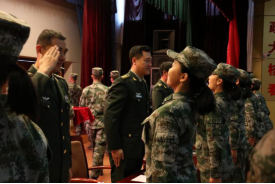 2017年5月20日,我作为中财的学生代表参加在北航举办的征兵宣传活动,第一次现场观看了仪仗队迎宾仪式动作汇报表演和女队员的枪操演出,十分羡慕。2017年应征报名,在学校领导和老师的帮助下,通过仪仗队层层选拔。