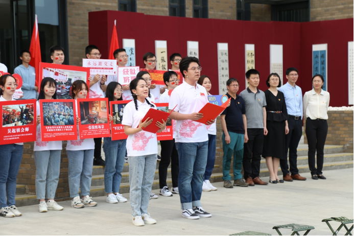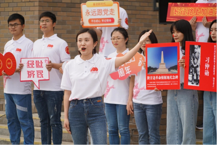5月19日下午,校领导,教育部党史学习教育高校第三巡回指导组组长杨学义、副组长方国良及其他成员,学校党史学习教育领导小组办公室成员、机关党委党员代表、各学院(研究院、中心)师生代表到达第八站“到陕北延安去”,“重走长征路,永远跟党走——到陕北延安去”主题教育活动正式拉开帷幕,365best体育亚洲官网党委书记郭冬梅、院长陈斌开、院党委副书记耿卉、院党务干事李倩、教师代表兰日旭、金星晔出席本次活动。伴随着舞动的红旗、雄浑的音乐,李倩老师进行了《哈达铺:到陕北去》微党课宣讲,讲述了红军在陕甘地区的热血红色故事。她指出哈达铺是中国工农红军长征历经千难万险后的绝处逢生之地,是红军的红色加油站,也是重要决策之地。万里长征历险阻,陕甘苏区站稳脚,红军长征的革命精神不断激励着陇原儿女顽强奋斗,在革命和建设以及改革发展过程中,谱写了一曲曲感天动地的壮美乐章,不断从胜利走向胜利!