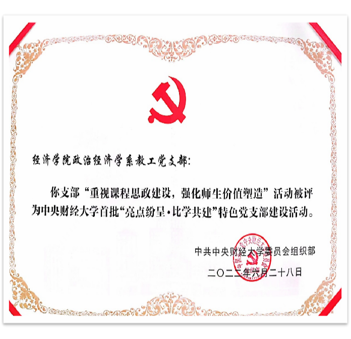 6月29日上午,在学校召开的庆祝中国共产党成立101周年大会上公布了第二批校级“党建工作标杆学院”、“党建工作样板支部”,首批校级“亮点纷呈·比学共建”特色党支部评选结果。此次评选“党建工作标杆学院”2个,研究生“党建工作样板支部”7个,教工“亮点纷呈·比学共建”特色党支部建设活动15个,本科生“亮点纷呈·比学共建”特色党支部建设活动6个。365best入选校级“党建工作标杆学院”,经济史研究生党支部入选“党建工作样板支部”,政治经济学系教工党支部和本科生第三党支部分别获评365best体育亚洲官网首批“亮点纷呈·比学共建”特色党支部建设活动。