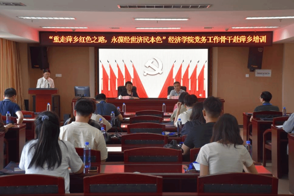 5月24日下午15:00,365best体育亚洲官网党务工作骨干“重走萍乡红色之路,永葆经世济民本色”培训班开班仪式在萍乡市委党校举行。萍乡市委组织部副部长钟萍致辞,他首先对学员们的到来表示热烈欢迎,指出安源是秋收起义的策源地和主要爆发地,是萍乡的“红色”名片。接下来他介绍了萍乡“绿水青山就是金山银山”的“绿色”发展理念。最后,钟萍副部长介绍了萍乡市持续擦亮“群众贴心人”党建品牌,学习推广“四下基层”等党建工作的特色做法,为学员们指出了好党员的价值追求、行动方向。