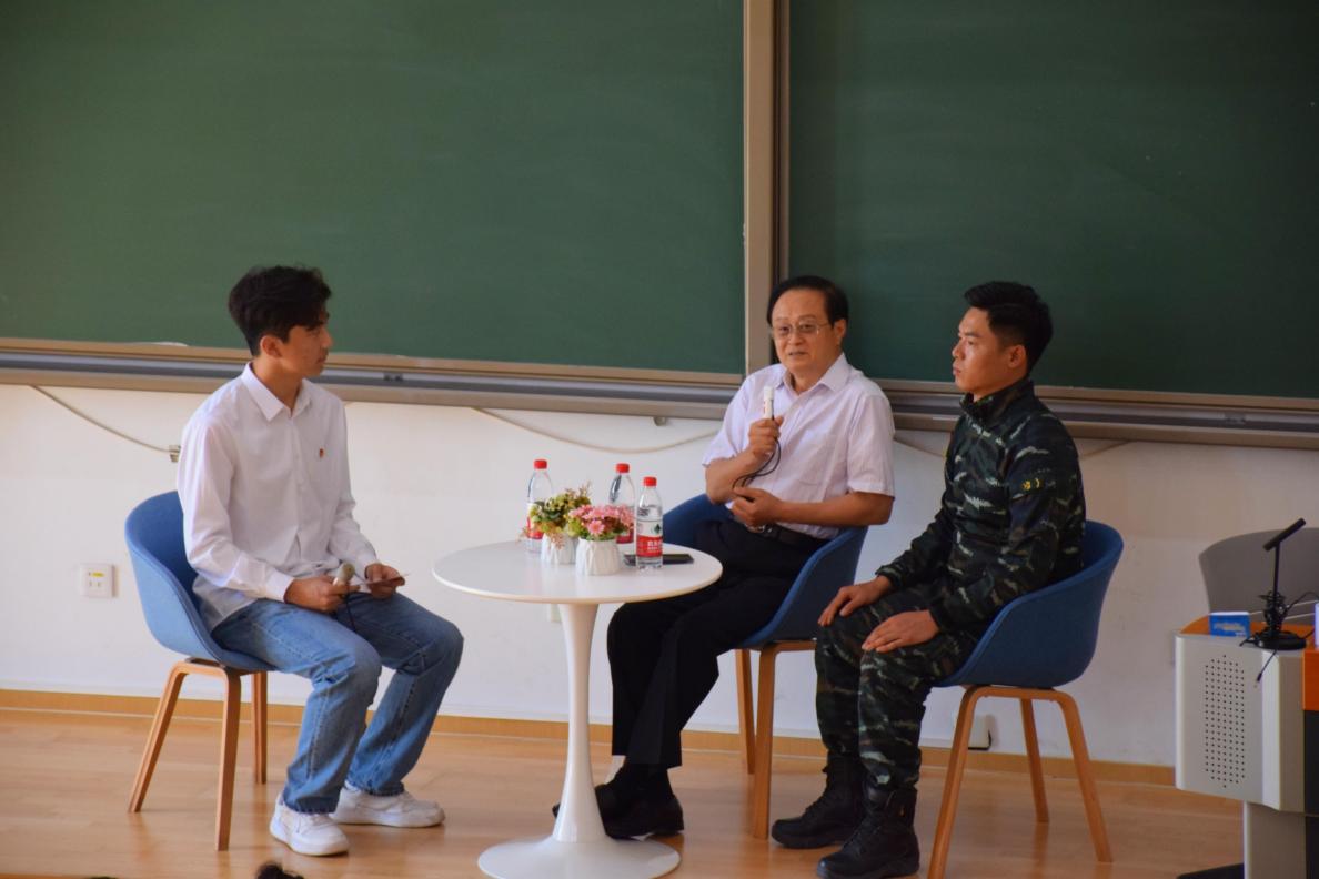 陈延峰结合自身军旅经历,讲述了特种兵在严酷环境中锤炼意志、忠诚履职的真实故事,展现了特种兵精神中蕴含的坚定信仰、过硬作风与不屈斗志。他鼓励同学们在学习中磨砺本领,在奉献中涵养责任,争做有理想、有担当的时代青年。