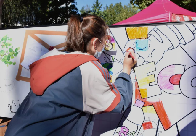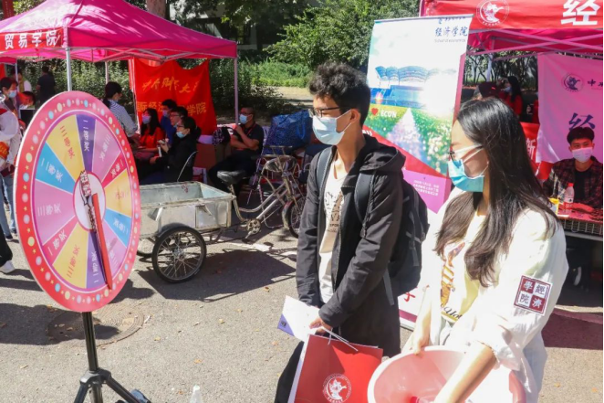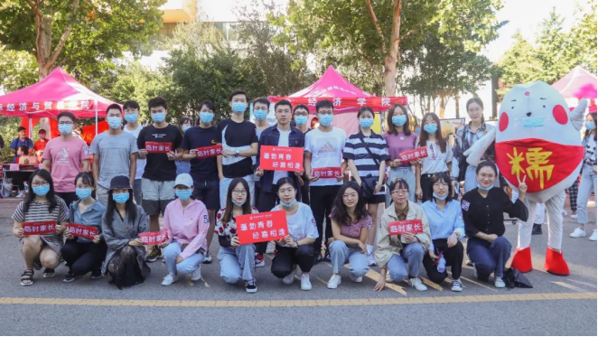 为了增强新生在特殊时期开学的归属感,学院更是精心准备了特别的环节。通过幸运转盘为新生们发放防疫物资,保障新生在校期间的防疫安全;写下自己的名字并亲手粘在信封上,寓意着为未来插上翅膀,飞向远方;用自己的创意为防疫板报添上一笔,为战疫贡献自己的力量;与经院吉祥物一颗糯米拍照留念,给自己的大学生活留下开端的纪念。