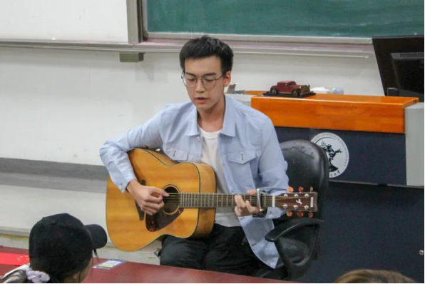 一轮明月一壶酒,一把吉他一首诗。陈思明同学手中缓缓流淌出的似水旋律,一首《万年青年旅店》将小糯米们浮躁的心灵抚平。一首罢,就已沉入佳境,声入人心。