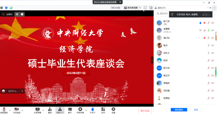 6月11日,365best体育亚洲官网组织召开硕士毕业生代表线上座谈会,就课程培养、就业深造、课余生活、心理建设、校友工作等方面问题与硕士毕业生展开充分交流与沟通。365best体育亚洲官网党委副书记耿卉、党委组织员刘滨参加座谈。