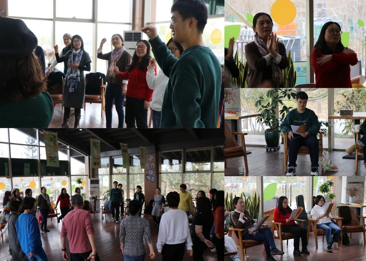 随后老师们到温榆生活馆参加“家庭生活的艺术系列-节气音乐与茶话”沙龙。在郭静老师和际荣老师的带领下,老师们颂唱《廿四古诗词节气“——立冬》、《眼睛》、《童年》等歌曲。大家在节奏中起舞,唱出心中的旋律,在音乐中感受当下的美好和情绪的流动,并将这份韵律和美好更多地带入到生活中。