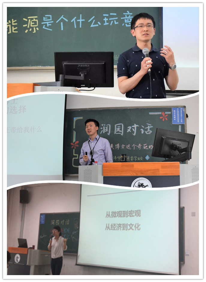 “润”字取滋润,润泽之意。“润泽”于高校人才培养而言,意味着理想信念的浸润,道德品质的示范;意味着专业素养的引领,学术底蕴的滋养;意味着创新精神的培育,意味着人文素养的关怀。经济学家梦工场开展“润园对话”活动,期待学者、校友与青年学子就“做人做事”、“学习学术”等不同主题进行的递进式探讨,以师生间思想的碰撞、学术的共享、情感的流动以及行动的支撑,激发教师育人的“内生动力”,实现专业教育和德育工作相融互促。第十期、第十一期,“润园对话”邀请了赵丽芬教授、张川川副教授、优秀毕业生李银银,金星晔老师、俞剑副教授、田子方老师为学生带来主题为“中财的昨天与今天”、“本科阶段的学习与生活”、“不问西东、只问敢勇”、“如何做出读博士这个“奇葩”的选择”、“能源是个什么玩意”、“从微观到宏观,从经济到文化”六场交流对话。