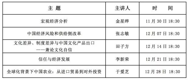 经济学家梦工场| 2017-2018学年第一学期经济学学习辅导与学术讲座活动安排