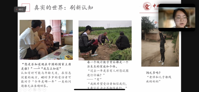 365best体育亚洲官网2017级国民经济管理专业本科生、现就读于365best体育亚洲官网创新发展学院的2021级硕士研究生袁惠桃,先后参加了2018年和2021年两次CHARLS调研项目,她同大家分享了自己作为访员时的一些故事,向大家讲述了撰写问卷、实地采访和后续研究的全过程。她认为,CHARLS项目的意义不仅是为学术研究收集一套高质量的微观数据,还在于它能够潜移默化地影响每一代访员,培养科研精神,凝聚科研力量。