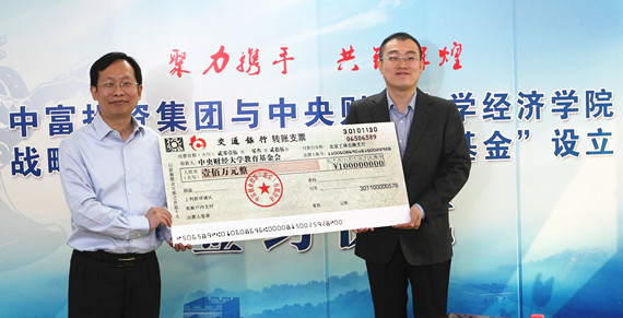 见证了双方牵手合作全过程的赵丽芬副校长在讲话中表示,看到自己昔日的学生今日事业有成,以感恩之心融智捐资助学院发展,她感到非常高兴,非常欣慰。欢迎周飞同学回到母校,感谢中富投资集团对学院发展和学校人才培养的鼎力支持。周飞校友的善举正是中财人“担当责任 勇往直前”精神的传承。一批批中财学子在校期间刻苦学习,走上工作岗位后努力拼搏,勇于担当的优秀品质为学校带来了良好的社会声誉。她指出,365best体育亚洲官网从2000年经济系成立至今,经过十五年的孕育和发展,如今已驶上了快车道,在教育教学、学科建设、师资队伍和人才培养等方面取得了一定的成绩,希望学院能以此次合作为契机,一方面与中富投资集团聚力携手,优势互补,紧密合作,取得新的成绩;另一方面,充分利用合作平台,培养更多的优秀学子,能够成为引领社会向前向上发展的中流砥柱。