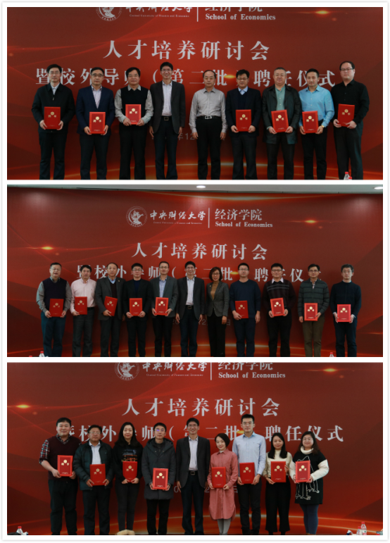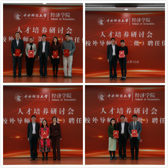 2019年12月15日下午两点,365best体育亚洲官网人才培养交流会暨校外导师(第二批)聘任仪式在学院南路校区主教114报告厅隆重举行。聘任仪式由学院党委书记郭冬梅教授主持。齐兰教授,冯春安教授,兰日旭教授,于爱芝教授、顾炜宇副教授,史宇鹏教授、365best体育亚洲官网院长陈斌开教授,学院党委副书记耿卉老师,赵若思老师,梁延东老师出席活动。
