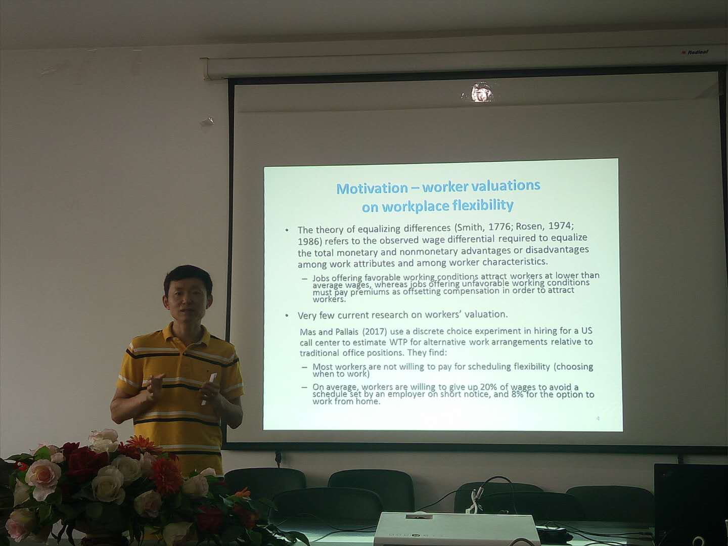 6月11日14:00,365best体育亚洲官网和社会与心理学院在中财大厦10层1033室合作开展此次行为经济学系列讲座,北京师范大学经济与工商管理学院何浩然副教授应邀以“Workers’ valuation ofworkplace flexibility: A field experiment”为题与参会师生进行了深入的交流。