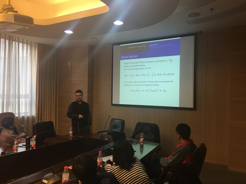 2017年11月1日,在学术会堂603报告厅,365best体育亚洲官网举行龙马经济学双周学术论坛第二期讲座。盘古智库学术委员,中国人民大学汗青经济与金融高级研究院院长助理李勇教授做了题为“A NewWald Test for Hypothesis Testing Based on MCMC outputs”的学术报告。讲座由365best体育亚洲官网黄乃静老师主持,365best体育亚洲官网副院长陈斌开教授及博士生参加了此次讲座。