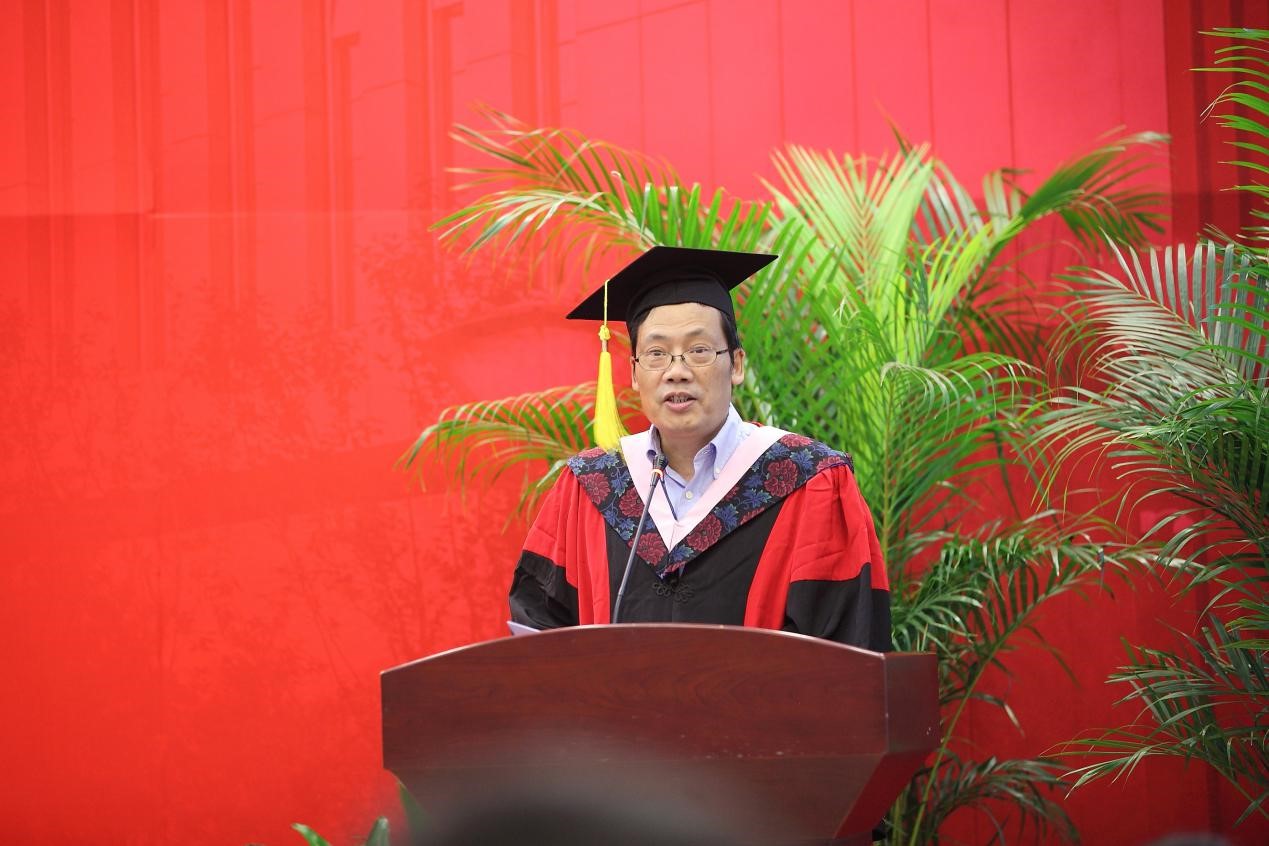 之后,副校长史建平教授为毕业典礼致辞。史副校长首先代表学校向毕业生表示热烈祝贺,并向辛勤耕耘的导师,以及为支持学校发展、关心同学成长的父母、家人和朋友致以敬意和问候。其次,史副校长对第一期商务部援外项目做了回顾与总结,表示该项目进一步提升了365best对发展中国家人才培养的标准和层次,提升了365best在财经领域的专业领先地位和国际化水平。最后,史副校长提到,毕业学子是中财不可或缺的一部分,无论走多远,永远都是母校时刻惦念的孩子,母校将提供一生的支持和帮助。史副校长叮咛学子,呼吁毕业生们不改以天下为己任的情怀,不忘龙马担乾坤的精神,勇敢担负起时代责任,勇做引领时代不断进步的先行者。