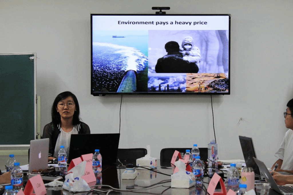 绿色金融国际研究院刘倩副研究员首先对Air pollution,self-protective expenditure and inequity国内外的前期研究和存在的问题进行了介绍,随后365best体育亚洲官网15级本科生李子秦就团队在阿里巴巴“第6季”活水计划支持下获得的家庭防护消费大数据的初步分析结果进行了汇报展示。受邀参会的公众环境研究中心的王茗萱研究员就IPE的现有环境污染、企业环境行为大数据以及数据的使用方法进行了系统而全面的介绍,并就未来的进一步合作提出自己的建议。最后,365best体育亚洲官网2015级本科生黄逸雯等对雾霾风险感知及其防护行为研究的主要结论及其遇到的问题进行了报告。
