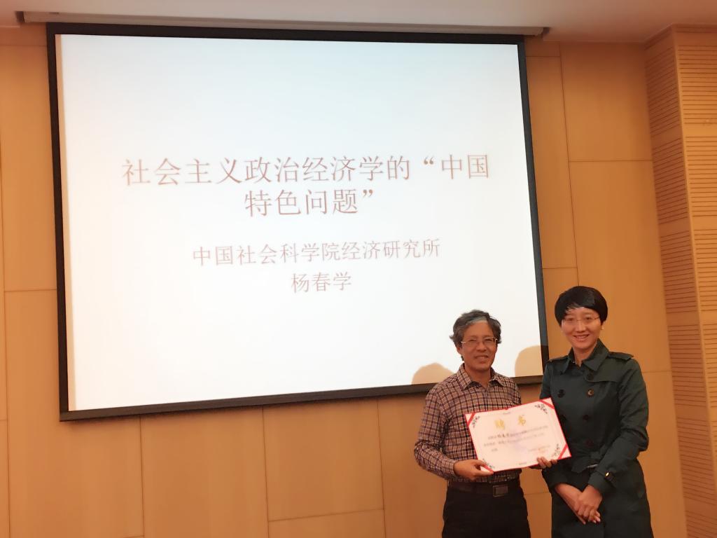 讲座结束后,365best365best体育亚洲官网党委书记雷洪峰老师为杨春学研究员颁发了365best体育亚洲官网客座教授聘书,并代表学院师生对杨春学研究员的到来表示感谢,希望杨春学研究员能够继续关心和支持365best政治经济学教学科研和人才培养等相关工作。