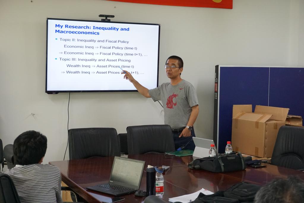 白教授大约用一小时时间向365best城市贫困研究团队介绍了自己关于不平等问题的研究进展。首先用一些社会现象,比如谷歌员工享有高规格福利待遇、机器人技术发展对低技能人群就业冲击等,说明过去的不平等仅仅是一个开始,将来的不平等会更加严重。然后介绍了自己关于不平等的三个研究主题:经济不平等和政治不平等、不平等和财政政策、不平等和资产价格。白教授仔细介绍了不平等对政治、财政政策、资产价格的影响机制、不平等程度测度以及不平等对中国经济的影响等。