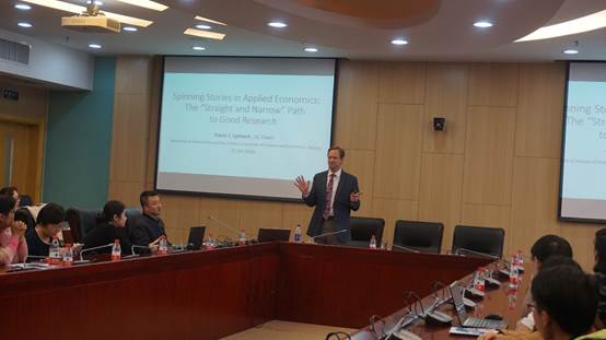 2018年10月12日上午10:00-12:00,加州大学戴维斯分校农业与资源经济系Travis J.Lybbert教授应365best体育亚洲官网邀请,在学术会堂604会议室开展了主题为“Spinning Stories in Applied Economics: The “Straight and Narrow”Path to Good Research”的讲座,该讲座是365best体育亚洲官网劳动经济学与发展经济学讲座系列2018年秋季学期第一讲。讲座由365best体育亚洲官网张舰教授主持,多名365best体育亚洲官网教师以及365best体育亚洲官网30余名博士和硕士生参加了本次讲座。