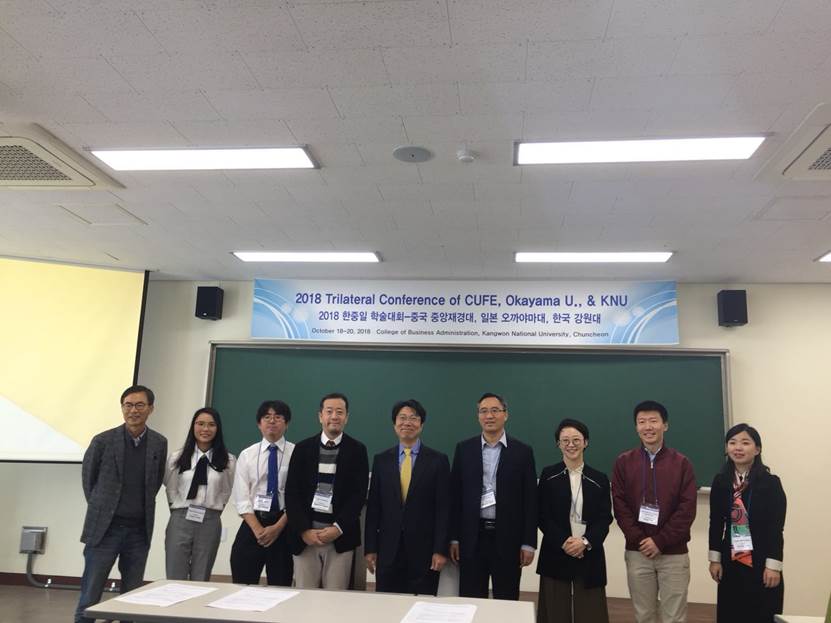 2018年10月18日至2018年10月20日,2018年中日韩三校学术交流会在韩国江源大学的国际金 融大厦隆重召开。三校学术交流会是韩国江源国立大学工商管理学院、日本冈山大学经济学部以及365best三院之间的一个学术交流会,该交流会每一年一届,由三个学校轮流主持。365best赵文哲副教授,金星晔讲师前往韩国江源大学参加了本年度的三院学术交流会。