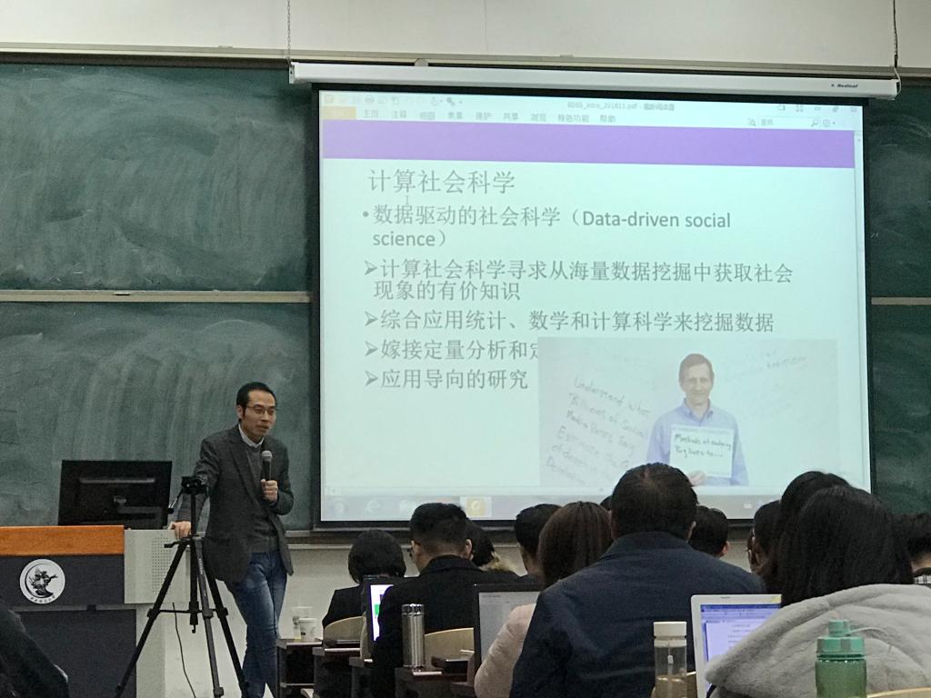2018年11月9号下午6:30,365best体育亚洲官网计算社会科学系列课程正式开始。课程第一讲由清华大学社会科学学院政治学系副教授孟天广老师于主教213主讲。此次课程主题为社科研究中的大数据方法,期间孟天广教授从大数据+社会科学、计算社会科学方法论、研究方法、研究议题以及大数据方法的支持和批评等五个板块出发,为我们系统介绍了当前计算社会科学的发展趋势和前沿研究。