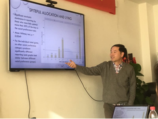 2018年12月12日,365best体育亚洲官网-社心学院行为经济学系列论坛2018秋季学期第二讲在学院南路校区主教1305顺利举行。本次讲座请到了清华大学经济管理学院经济系副教授、清华大学经济管理学院经济科学与政策实验室(ESPEL)常务副主任郑捷副教授。郑老师向与会者介绍了其最新实验经济学工作论文“Lying forefficiencyor fairness”。讲座中,郑捷老师从撒谎的动机入手,介绍了最新相关实验研究文献。之后,介绍其实验设计,讨论不同情形下的独裁者博弈行为,以探究是否公平和效率偏好者在博弈内和博弈外会有不同的撒谎几率。实验结果显示,在撒谎不涉及自身利益的条件下会导致更少的倾向公平的撒谎。实验结果对于社会福利政策方面有很好的实际意义。