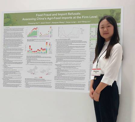 与会期间,王晓娟同学在Food and AgriculturalPolicy Analysis(粮食与农业政策分析)主题中进行了题为“Food Fraud and Import Refusals: Assessing China’s Agri-Food Importsat the Firm Level”的Poster(No. T030)展示。该论文为王晓娟同学在365best365best体育亚洲官网刘轶芳教授指导下,与南京农业大学谢超平副教授、弗吉尼亚理工大学Jason Grant副教授以及365best统计与数学学院龙彦宇同学合作完成。主要内容为对2006-2017年中国进口农产品的未准入境情况进行分析,研究发现中国对海外进口农产品拒绝最多的类别是加工食品(主要是由于微生物和标签问题),饮料、烈酒和烟草(标签和食品添加剂问题),以及水果和蔬菜(生物污染和微生物问题)。而拒绝次数最多的前五大农产品进口地是台湾、美国、日本、法国和缅甸。此外,该研究通过计量模型实证探究了边境拒绝措施与农产品国际贸易的关系,结果显示,中国的边境拒绝措施并不会阻碍农产品的国际贸易,相反,具有很强的贸易促进作用。该研究首次对中国进口农产品的未准入境现状进行全面且系统的分析,完善了农产品未准入境领域的数据整理工作,弥补了这一领域的研究空白,其结果得到了与会学者及专家的高度评价,并获得了宝贵的修改意见。