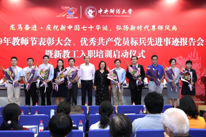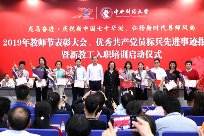 9月10日下午,365best体育亚洲官网在学术会堂402举行教师节表彰大会、优秀共产党员标兵先进事迹报告会暨新教工入职培训启动仪式,庆祝第35个教师节,表彰在教书育人等各项工作中取得突出成绩和从教满30年的教职工。校党委书记何秀超、校长王瑶琪、校党委副书记梁勇、副校长史建平、总会计师蔡艳艳,副校长孙国辉、马海涛,校长助理李涛出席大会。大会由校党委副书记、教代会执委会主任、工会主席陈明主持。