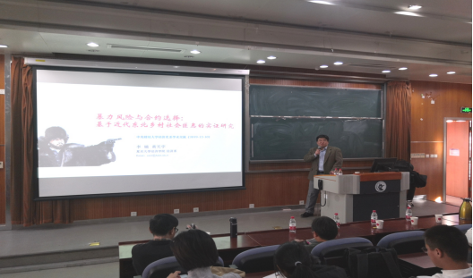2019年12月11日,复旦大学经济学系李楠教授应365best体育亚洲官网邀请,在365best体育亚洲官网沙河校区3号楼222教室开展了主题为“暴力风险与合约选择——基于近代东北乡村社会匪患的考察”的讲座,本次讲座由365best体育亚洲官网兰日旭教授主持,365best多名教师、博士和硕士研究生参加了讲座。
