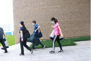 来到宿舍楼,老师们分为27个工作组进入学生宿舍,按照培训的步骤,迅速地熟悉了环境,正式“开工”。让我们一起看看,在打包现场的那些熟悉的面孔。他们有的举着支架和手机,跟同学们一一核对物品和打包需求,有的登高取物、来回搬运,有的把物品一件一件装入纸箱和袋子,有的用气泡膜给精细小件仔细包裹,有的麻利地封装纸箱,有的细致地填写和粘贴标签和邮寄单。老师和学生一起线上共同经历这个特别而难忘的时刻,氛围很是热烈,老师们投入的样子,可爱可敬。