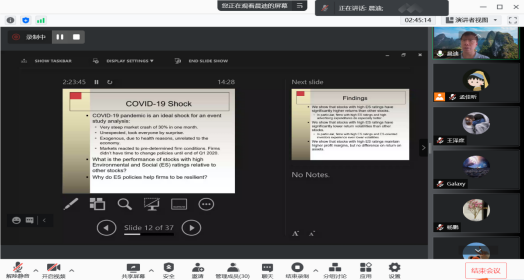 张晨迪教授讲授了“社会责任”、“股利政策”两个专题。在“社会责任”专题中,张教授首先详细介绍了ESG(环境、社会和公司治理)投资和传统投资的区别,指出ESG投资有不断上升的趋势。接着,张教授介绍了ESG研究相关数据库。最后,张教授分析了新冠疫情冲击下企业社会责任投资对公司业绩的影响。在“股利政策”专题中,张教授先介绍了公司股利相关理论和政策,然后分析了采用互联网搜索构造的股利情绪与公司股利政策、收益预测的关系。