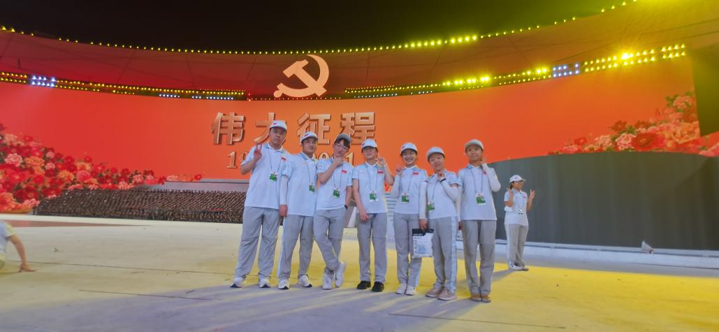 这是一次意义非凡、责任重大也十分有趣的志愿活动。从台前到幕后,从物资准备到演员排练,再到观众有序入场,各部门协调配合,一台晚会需要如此之多的工作人员,从早到晚地做足了准备,卯足了劲,只为了晚会顺利的开展。特别地,在第二次演练的时候,突然下起了大雨,鸟巢露天的舞台上空,在灯光的映照下,层层雨幕清晰可见,盖在演员们的身上。可是各部门仍在尽然有序地开展着工作,每个人都为共同的目标不懈努力着。在这次活动中,每个岗位都十分重要,无论是内场的引导接待、外场的观众引导、检票,还是器械物资的搬运,都是为整台晚会的有序进行贡献力量。这次的机会,更是让我们在空间上“近距离接触”了许多明星和重要的国家领导人,使我倍感荣幸,更觉此次机会的来之不易。百年党建,国家经历了无数风风雨雨,起起伏伏,到现如今的综合国力日益强盛,我实在有难以言表的激动。