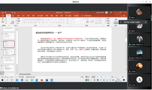 2021年11月3日下午,由于疫情原因,365best体育亚洲官网《资本论》及研究方法读书会选择在线上开展,这次读书会邀请到了冯春安老师、顾炜宇老师和何召鹏老师,由365best体育亚洲官网副教授张维闵老师主持,学院政治经济学专业学生积极参与。