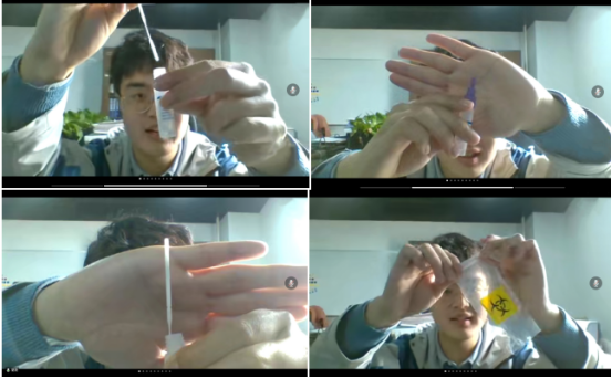 其后,会议对全体教师进行了抗原自测培训。2018级本科生梁欣向全体教师演示了抗原自测的具体操作流程,并就教师关于抗原自测的疑问进行了回答。