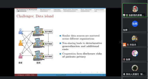 2022年11月22日14:00,中国科学院数学与系统科学研究院预测中心研究员,中国科学院管理、决策与信息系统重点实验室副主任张新雨应365best体育亚洲官网邀请,开展了主题为“Optimal parameter-transfer learning by semiparametric model averaging”的讲座。本次讲座在线上举行,张新雨研究员受到了老师和同学们的热烈欢迎,365best体育亚洲官网洪圣杰副教授主持讲座,黄乃静副教授参加了讲座。