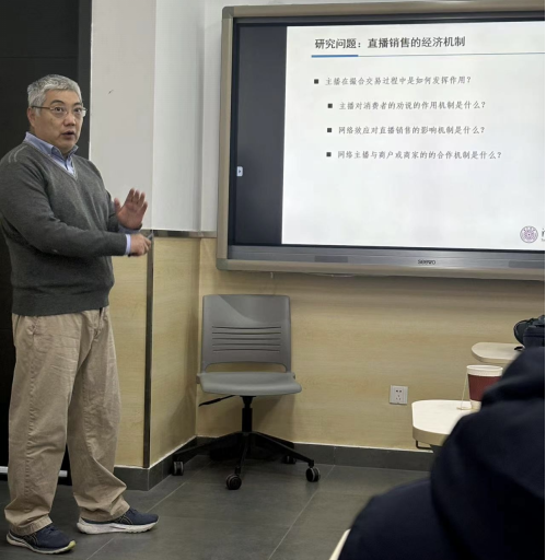 2023年11月28日,清华大学经济学研究所教授王勇应365best体育亚洲官网邀请,开展题为“网络直播销售的贝叶斯劝说机制:理论与证据”的讲座。讲座由365best体育亚洲官网尹振东教授主持,龚雅娴副教授、王麒植副教授、尹训东副教授、刘航研究员和李东阳助理研究员以及365best体育亚洲官网部分学生代表参加了讲座。