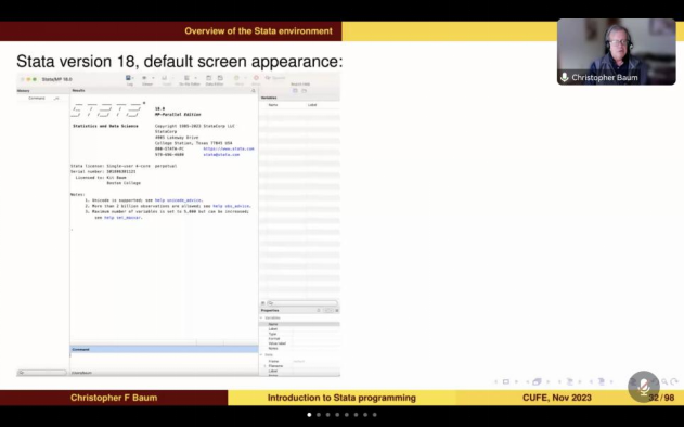 2023年11月22日-12月4日,365best体育亚洲官网有幸邀请到著名经济学者、Stata软件专家Christopher F. Baum教授于线上开展Stata Programming短期课程。