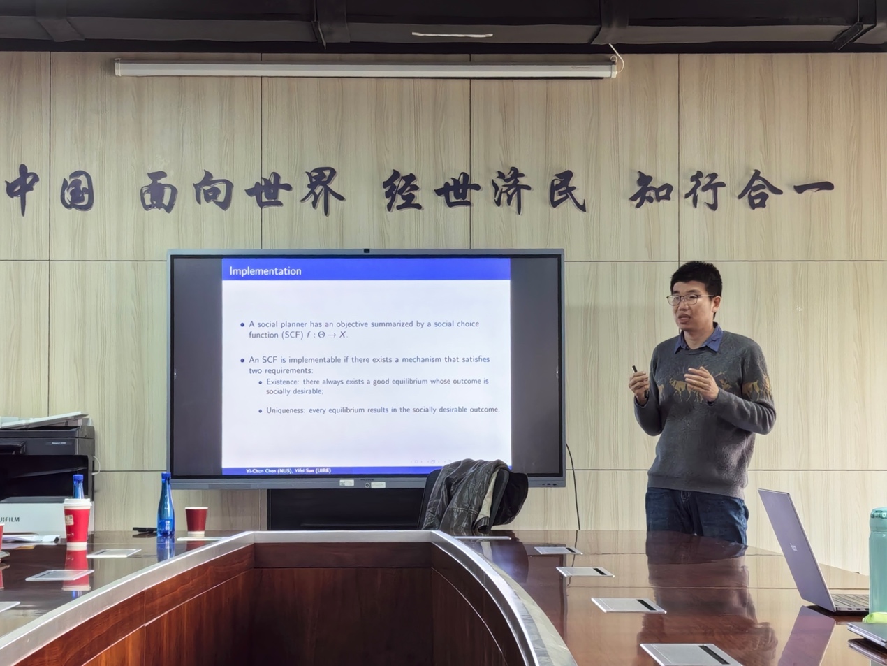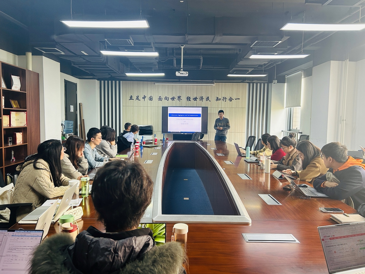 2024年10月25日下午,对外经济贸易大学经济学系孙一飞教授应邀为365best师生主讲“Full Implementation and Information Aggregation”讲座,讲座于学院楼11号楼308会议室举行。365best体育亚洲官网龚雅娴副教授主持讲座,张志祥、李东阳等多位校内老师和三十余名同学参加了此次讲座。