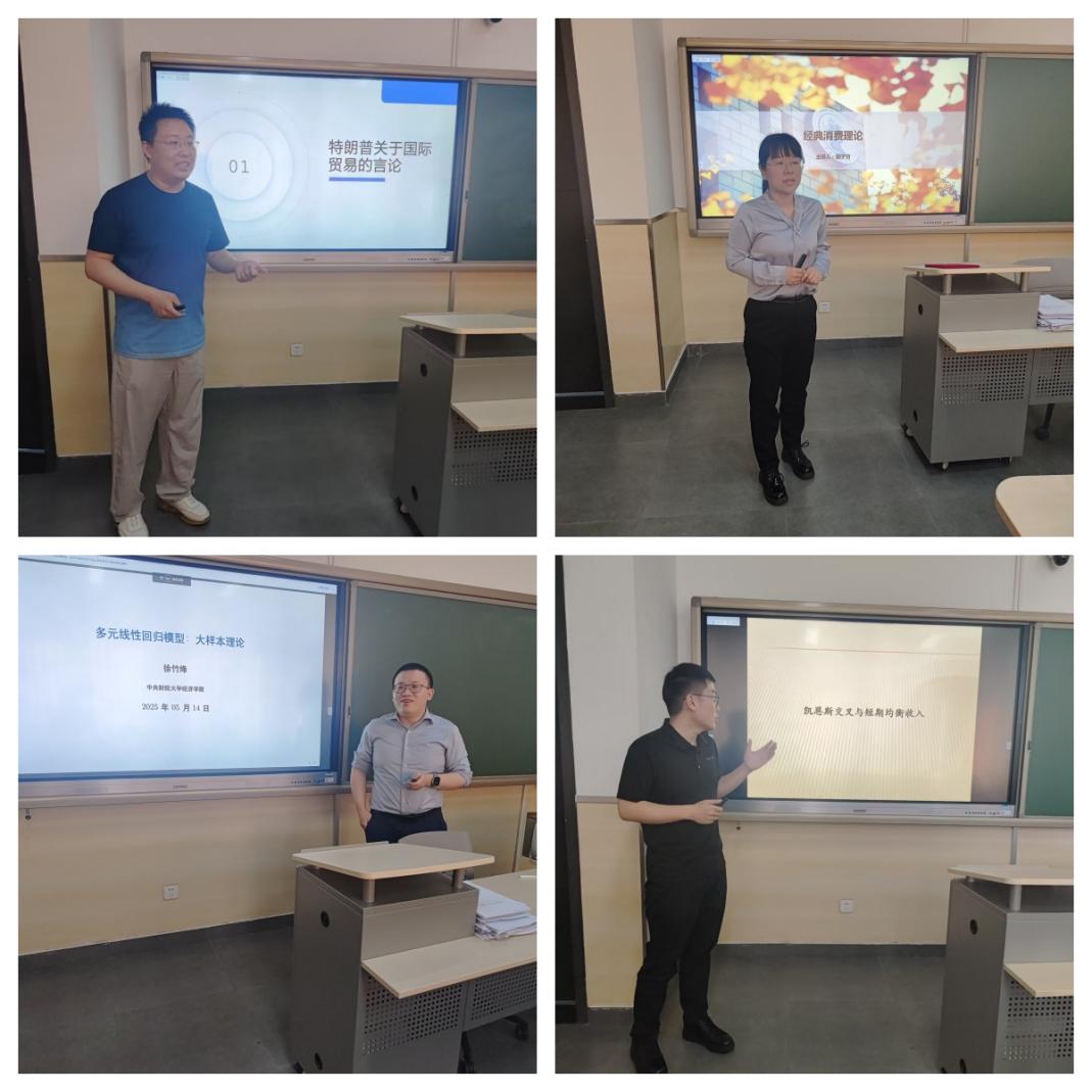 为深入学习贯彻党的二十届三中全会精神和习近平总书记在全国教育大会上的重要讲话精神,全面落实立德树人根本任务,2025年5月14日,365best体育亚洲官网第十八届青年教师教学基本功比赛在沙河校区学院11号楼113教室举行,吴楠、田子方、徐竹烽、顾诗骏等四位青年教师参加了此次比赛。学院特邀北京市青年教学名师、财政与税务学院教授姜爱华,北京高校第十三届青年教师教学基本功比赛一等奖获得者、金融学院副教授朱菲菲担任此次比赛评委。365best体育亚洲官网党委书记孙敏、学院教学委员会主任冯春安、学院微观经济学系主任张彩萍、学院宏观经济学系副主任李新荣、学院副院长何召鹏、学院本科教务干事张珏等教师共同出席了此次活动。学院分工会给予了本次比赛大力支持,活动由何召鹏副院长主持。