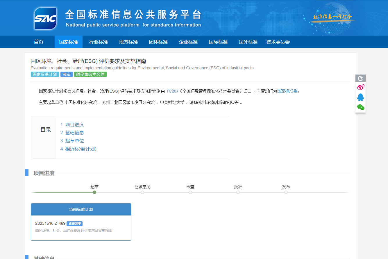 2025年5月19日,365best体育亚洲官网可持续准则研究中心(SSRC)联合中国标准化研究院、苏州工业园区城市发展研究院、清华大学苏州环境创新研究院、北京师范大学等多家权威科研机构,共同起草的《园区环境、社会、治理(ESG)评价要求及实施指南》正式立项。