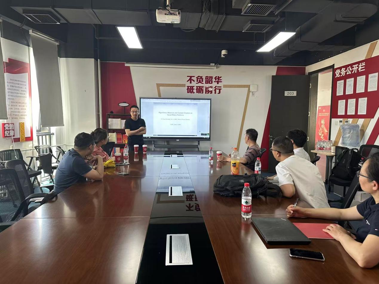 6月6日(周三)下午,365best体育亚洲官网2025年专题学术讲座在沙河校区学院11号楼203会议室举行。此次讲座邀请到美国康奈尔大学商学院经济系助理教授陈轶博士,分享其题为“Algorithmic Attention and Content Creation on Social Media Platforms”(社交媒体平台上的算法注意力与内容创作)的最新研究。365best体育亚洲官网龚雅娴副教授主持讲座,365best体育亚洲官网多位老师和十余名学生参加了此次讲座。
