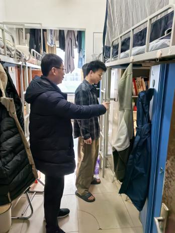 走访过程中,老师们代表学院向同学们送上了温馨的节日祝福,详细询问了大家的学习近况和寒假规划,并着重强调,寒假期间安全意识不可松懈,要时刻保持警惕,注意人身和财产安全,合理安排假期生活。对于留校的同学,务必严格遵守宿舍管理制度,尤其要高度重视消防安全,离开宿舍时仔细检查电器设备是否断电,杜绝安全隐患。