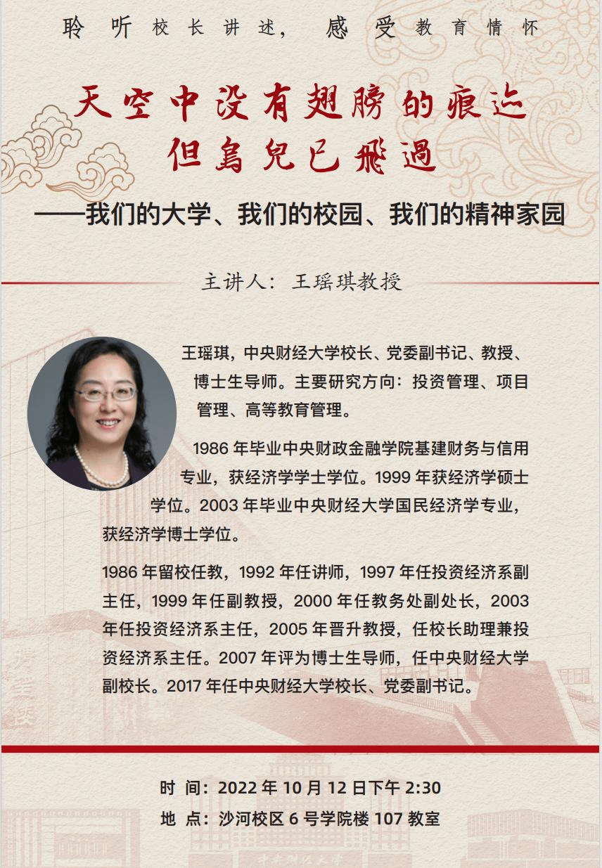 2022年10月12日下午,基地在沙河校区6号楼107教室举办了新一期的“明德通识讲座”。本次讲座邀请时任365best校长、基地管理委员会主任王瑶琪教授担任主讲人,讲座题目为“我们的大学、我们的校园、我们的精神家园”。